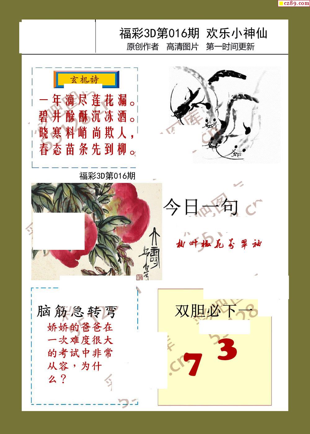 > 26年福彩3d016期欢乐小神仙预测图